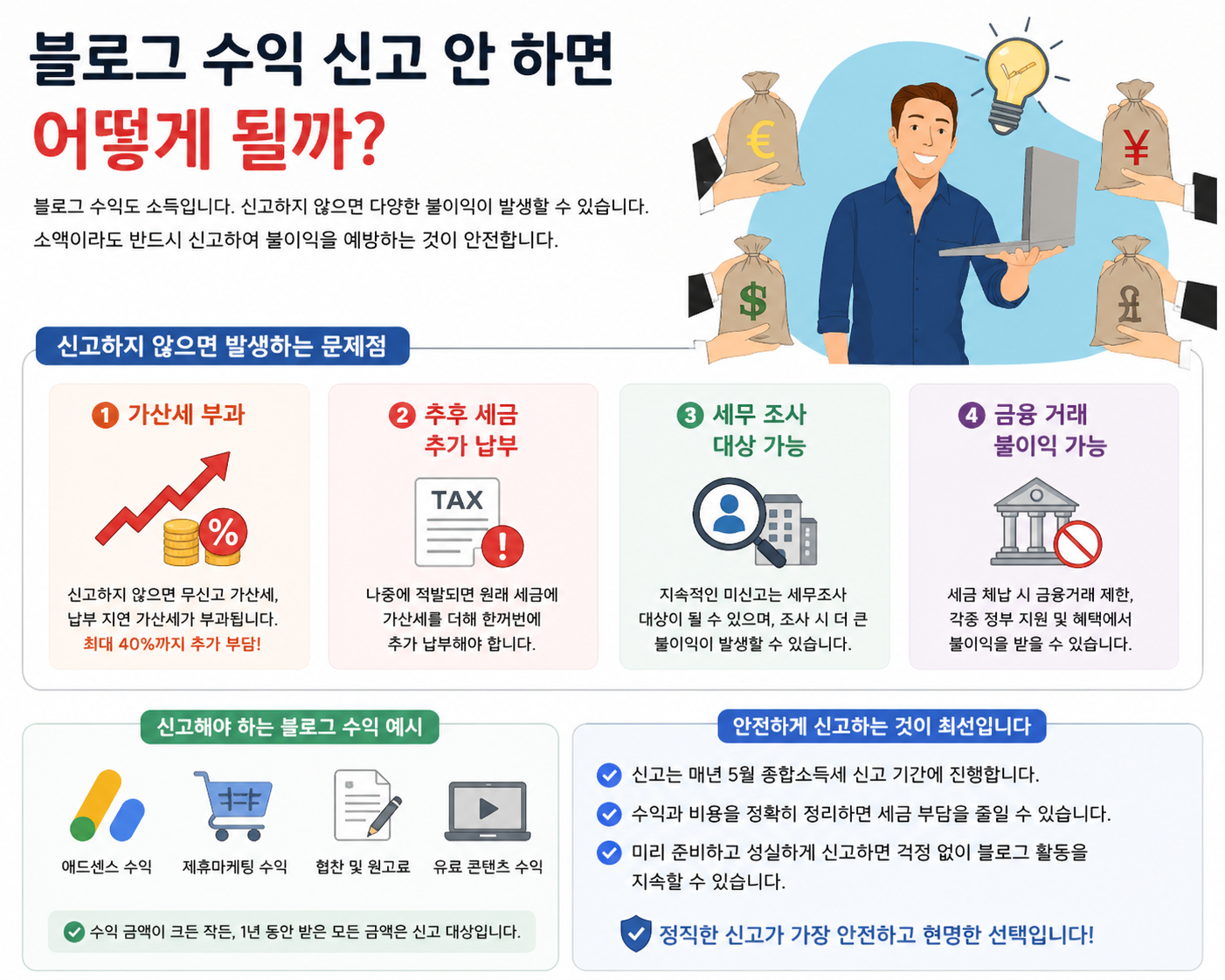 블로그 수익 신고를 하지 않으면 문제가 발생할 수 있습니다.