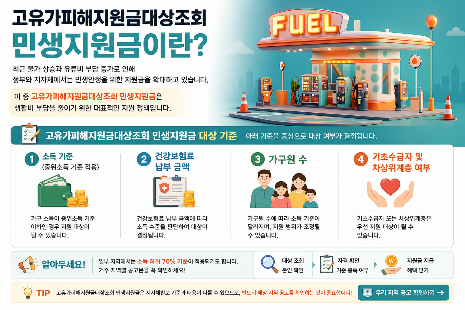 고유가피해지원금대상조회 민생지원금은 아래 기준을 중심으로 결정됩니다.