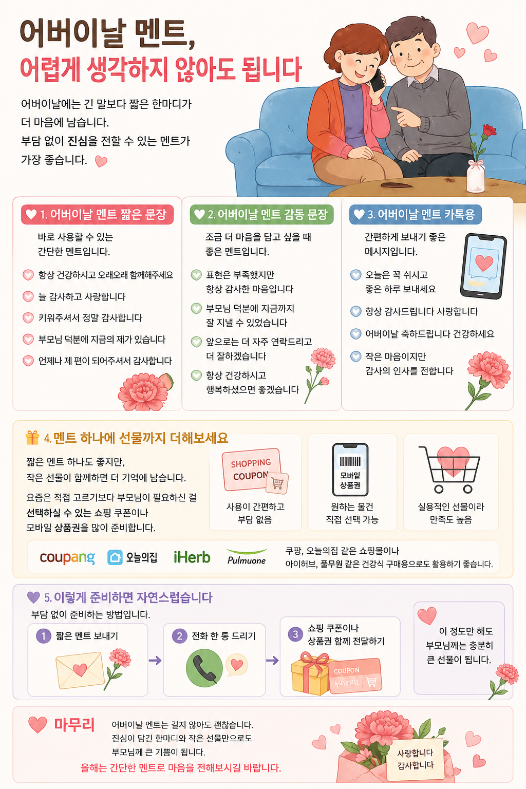 어버이날에는 긴 말보다 짧은 한마디가 더 마음에 남습니다.
